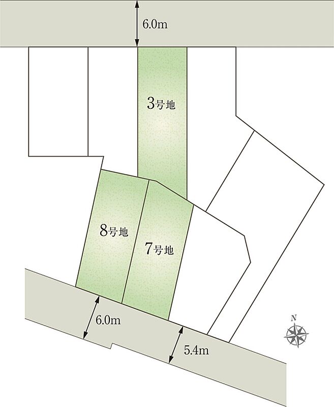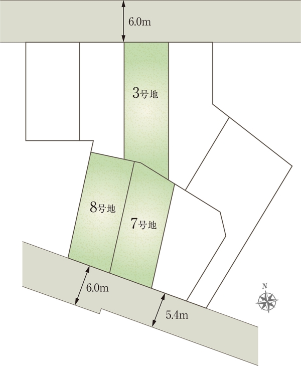 | 間取り | 3LDK(3号地、8号地)、4LDK(7号地) | 建物構造 | 軽量鉄骨2階建(3戸) |