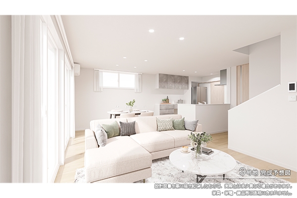 - ※完成予想図やCG合成画像は、門塀・植栽・庭・外観等、実際とは多少異なる場合があります。