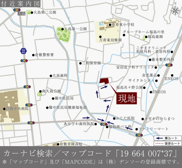 - ※地図、航空写真情報および地形ならびに周辺のお店・施設は、必ずしも現況を表すものではありません。