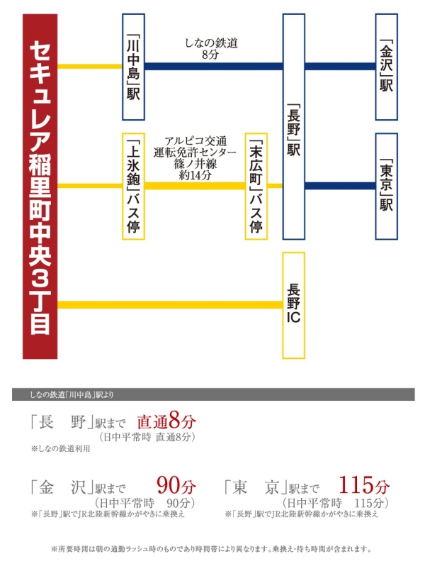JR篠ノ井線「川中島」駅 徒歩30分~30分 JR北陸新幹線「長野」駅 徒歩68分~68分 |