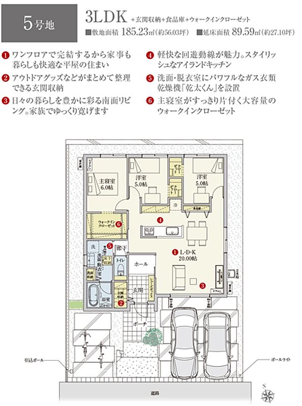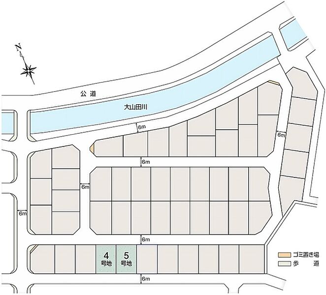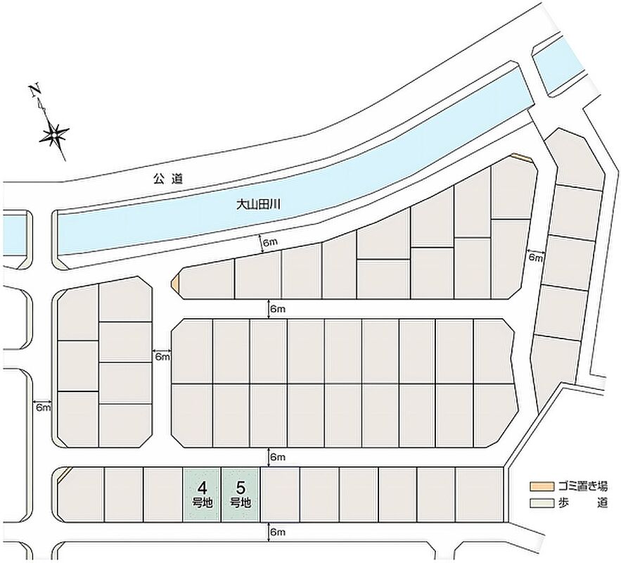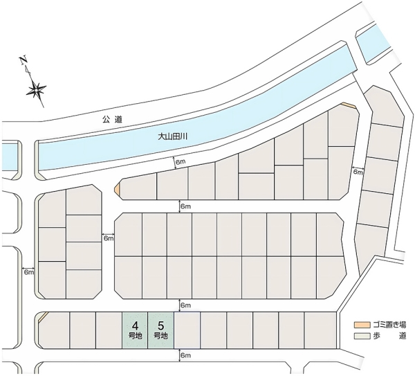 | 建物面積 | 85.29m2(4号地)、89.59m2(5号地) | 土地面積 | 185.22m2(4号地)、185.23m2(5号地) 全て私道負担なし |