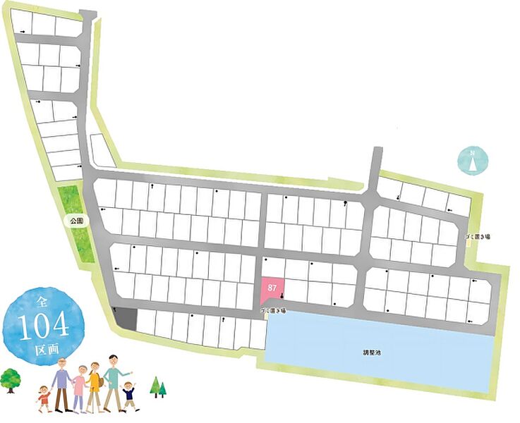 | 建物面積 | 104.16m2(87号地) | 土地面積 | 243.49m2(87号地) 私道負担なし |