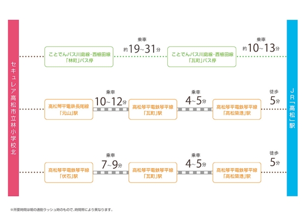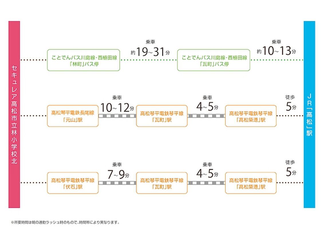 高松琴平電気鉄道琴平線「伏石」駅 徒歩27分~27分 高松琴平電気鉄道長尾線「元山」駅 徒歩31分~31分 JR予讃線「高松」駅 徒歩93分~93分 |
