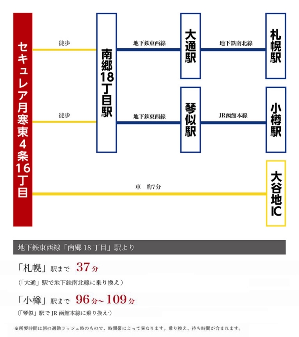 札幌市営東西線「南郷18丁目」駅 徒歩17分~17分 札幌市営東豊線「福住」駅 徒歩27分~27分 札幌市営南北線「真駒内」駅 徒歩100分~101分 |