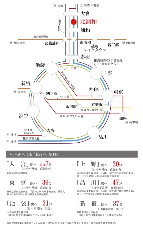 JR京浜東北・根岸線「北浦和」駅 徒歩26分~26分 JR京浜東北・根岸線「北浦和」駅 徒歩26分~26分 JR京浜東北・根岸線「浦和」駅 徒歩30分~30分 |