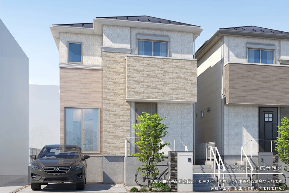- ※完成予想図やCG合成画像は、門塀・植栽・庭・外観等、実際とは多少異なる場合があります。
