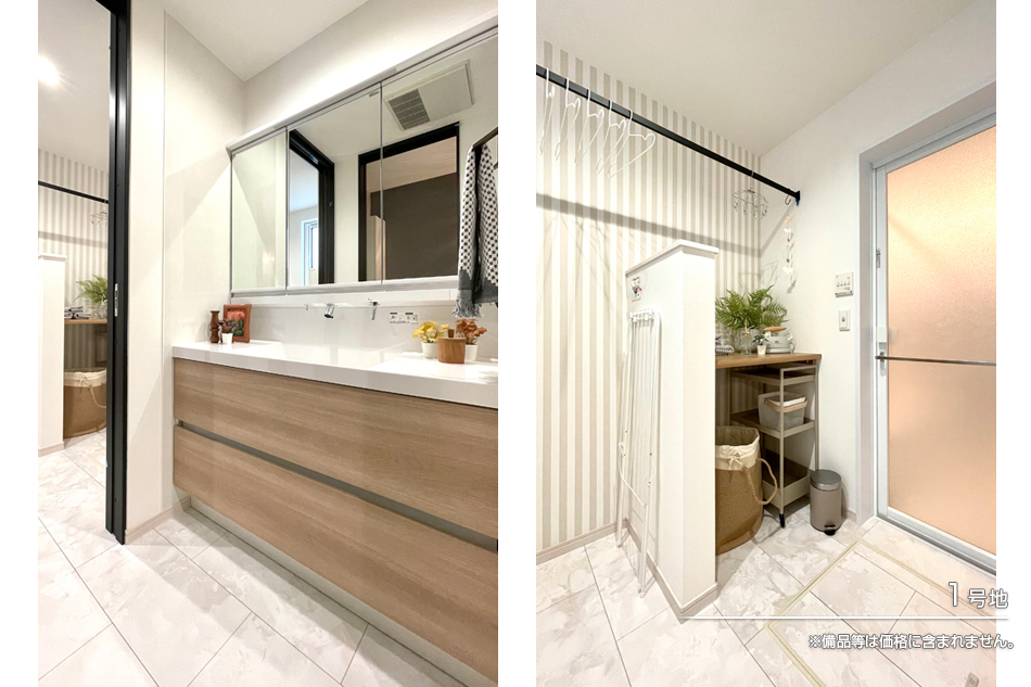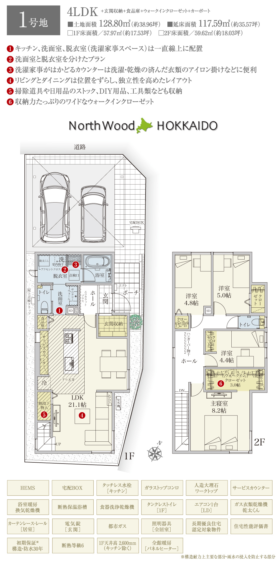 | 建物面積 | 117.59m2(1号地) | 土地面積 | 128.80m2(1号地) 私道負担なし |