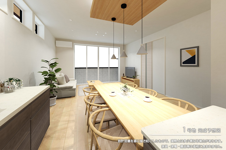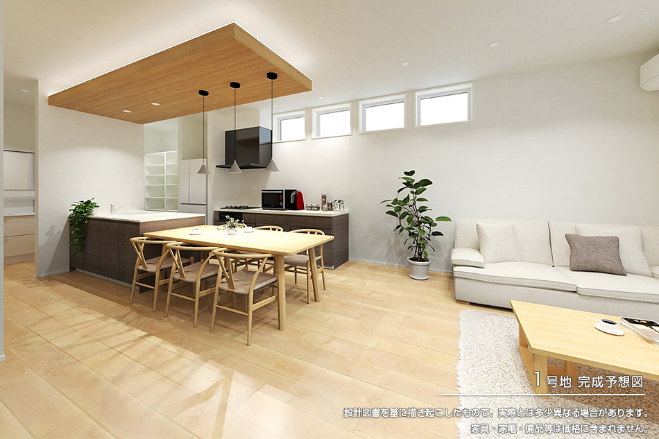 - ※完成予想図やCG合成画像は、門塀・植栽・庭・外観等、実際とは多少異なる場合があります。