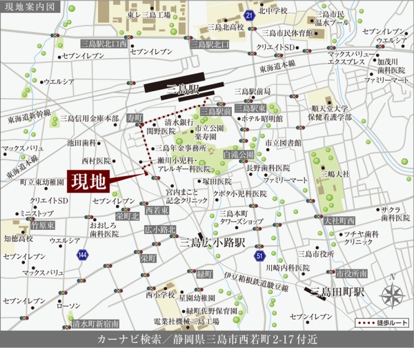 伊豆箱根鉄道駿豆線「三島広小路」駅 徒歩7分 JR東海道本線「三島」駅 徒歩10分 JR東海道新幹線「三島」駅 徒歩10分 |
