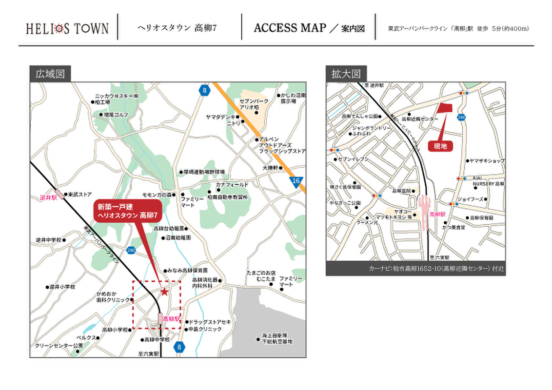 東武野田線「高柳」駅 徒歩5分 北総鉄道「新鎌ヶ谷」駅 徒歩55分~56分 |
