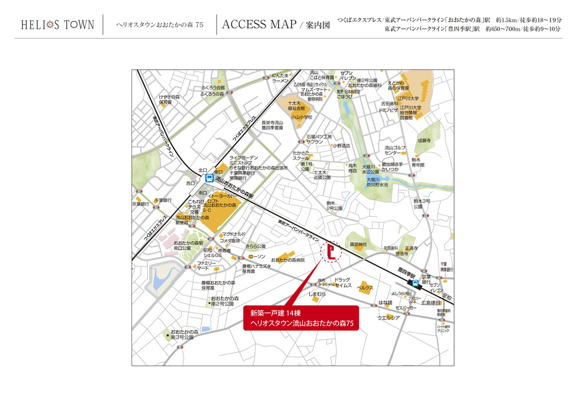 つくばエクスプレス「流山おおたかの森」駅 徒歩18分~19分 東武野田線「流山おおたかの森」駅 徒歩18分~19分 東武野田線「豊四季」駅 徒歩9分~10分 |