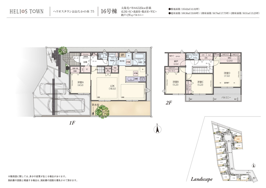 | 建物面積 | 108.05m2~109.30m2 | 土地面積 | 135.62m2~141.96m2 |