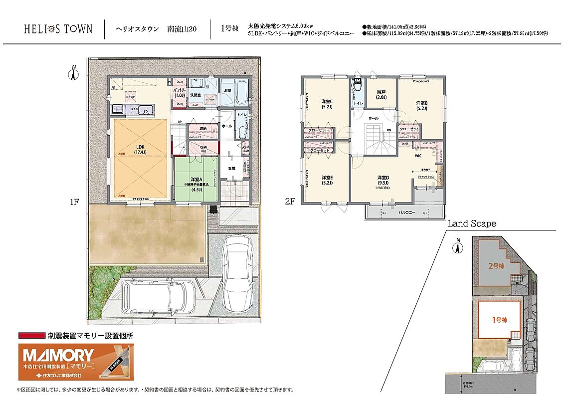 | 建物面積 | 99.99m2(30.18坪)~115.09m2(34.75坪) | 土地面積 | 141.05m2(42.66坪)~158.88m2(48.06坪) |