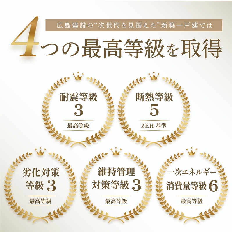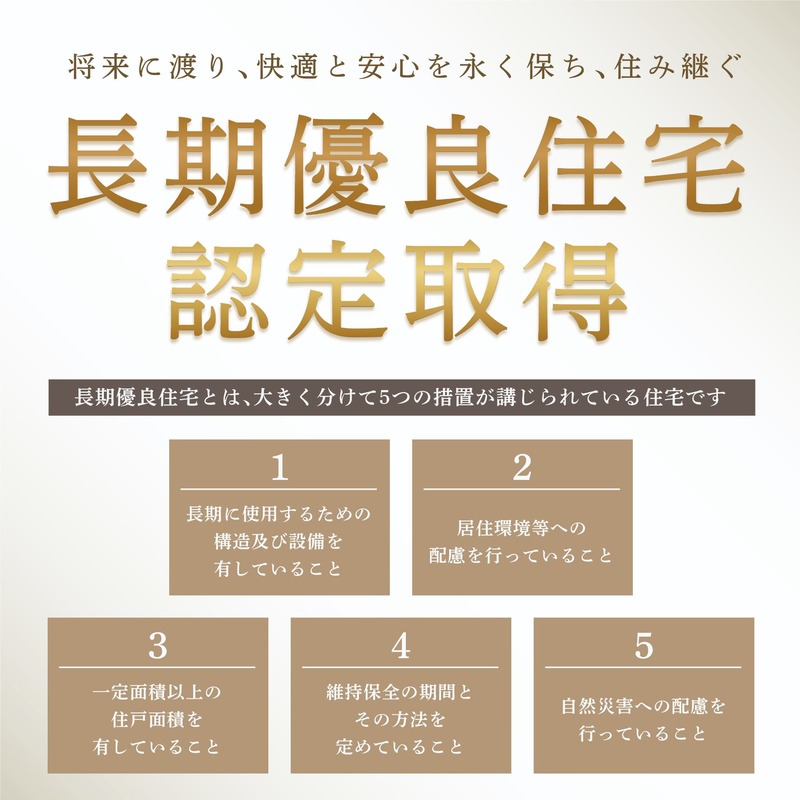 耐震性、省エネ性、維持管理のしやすさなど、国が定めた厳しい基準をクリアした高品質な住宅です。