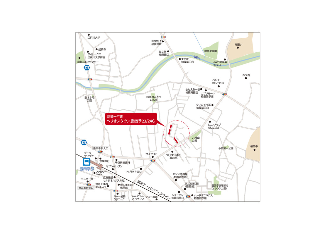 東武野田線「豊四季」駅 徒歩9分~12分 つくばエクスプレス「流山おおたかの森」駅 徒歩32分~35分 JR常磐線「柏」駅 徒歩36分~39分 |