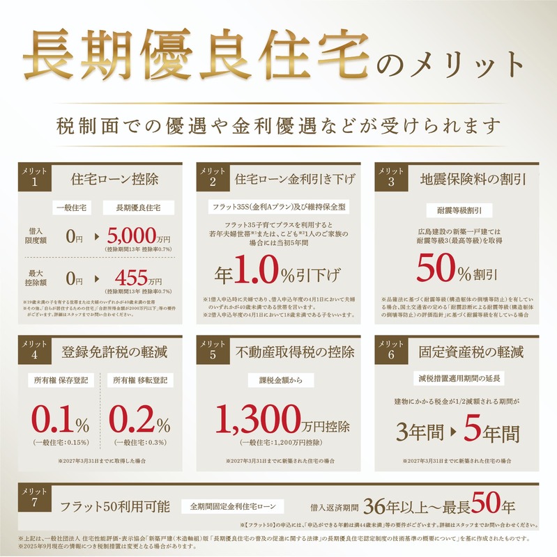 ■高い耐久性と省エネ性能により、光熱費や修繕費などの維持費を抑えられます。さらに、住宅ローン控除や地震保険料の割引といった金銭的な優遇措置が充実しており、長く快適かつ家計に優しく住み続けられます