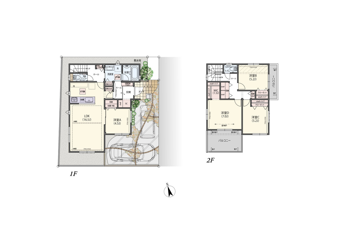 - ※完成予想図やCG合成画像は、門塀・植栽・庭・外観等、実際とは多少異なる場合があります。
