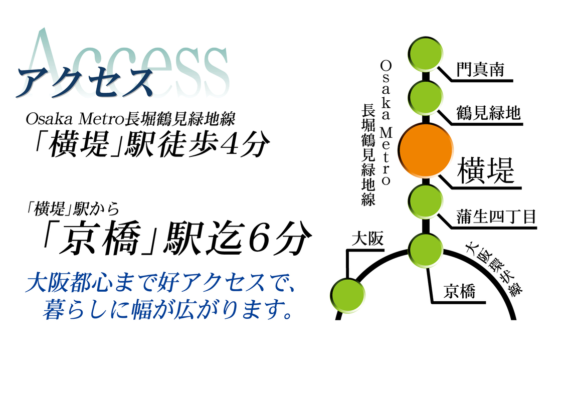 Osaka Metro 長堀鶴見緑地線 横堤駅 徒歩4分 日々の通勤通学に便利。