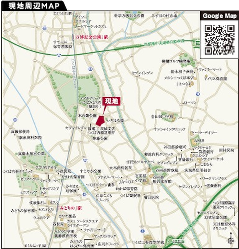 つくばエクスプレス「みどりの」駅 徒歩26分~29分 車で約7分 つくばエクスプレス「万博記念公園」駅 徒歩23分~26分 車で約4分 つくバス 「みずほ団地入口」バス停 徒歩10分~11分 分譲地より約700m |