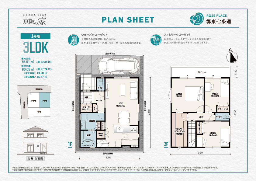 | 建物面積 | 90.05m2 | 土地面積 | 75.51m2 |