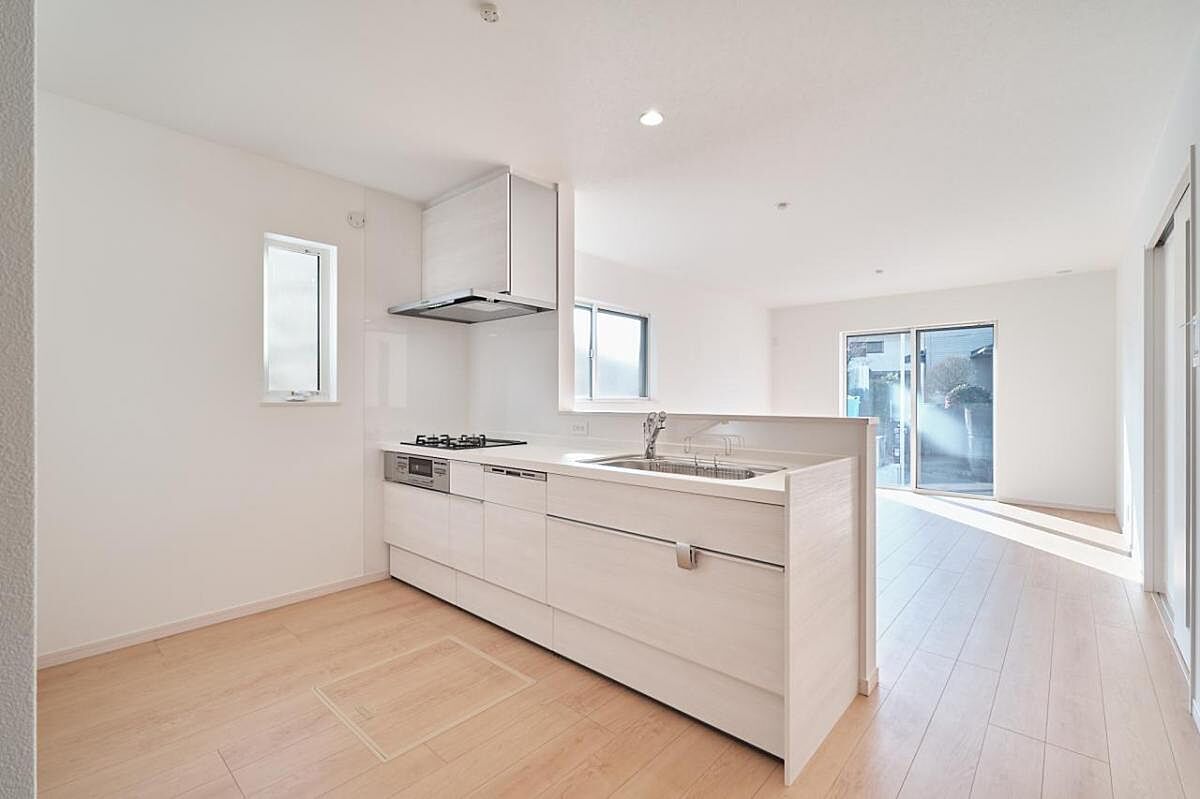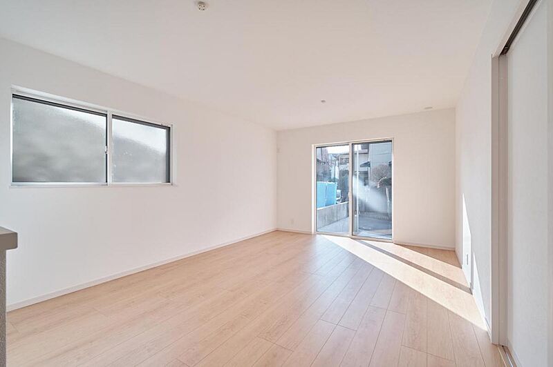 南と東に窓があり、朝昼明るいリビングダイニングが魅力です。