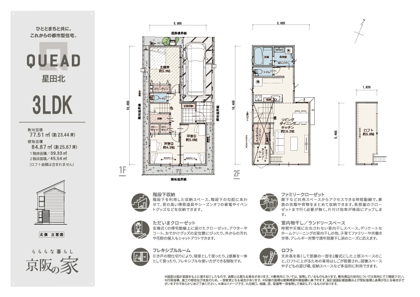 新築一戸建て 【京阪の家】快速停車駅「星田」徒歩3分|ガス衣類乾燥機「乾太くん」装備|Quead星田北