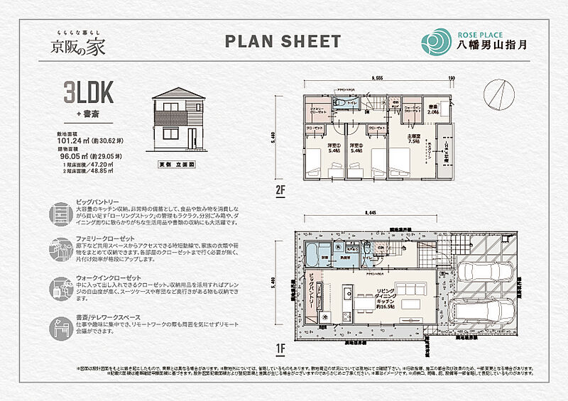 新築一戸建て 収納たっぷり買い物もレジャーも便利なくずはロケーション、八幡男山指月