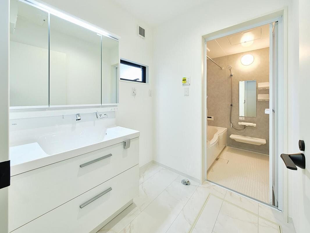 浴室乾燥機能、物干しパイプ付で、梅雨時期や冬場の室内干しも快適...