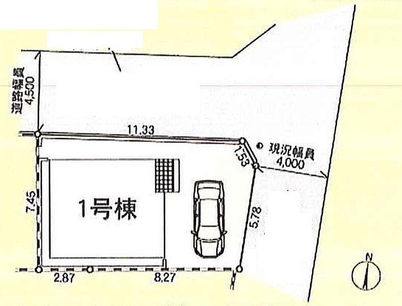 | 駐車場 | 1台 | 道路の幅員 | 北側約4.5m、東側4.0m |