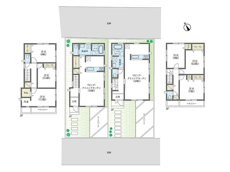 | 間取り | 各3LDK+カースペース | 建物構造 | 木造2階建 |