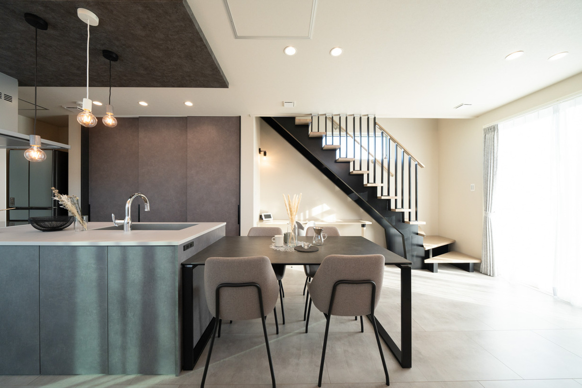 キッチンを中心に回れる回遊動線・ウッドデッキ・畳コーナーなど、居場所がたくさん!家族が集まれる間取り。