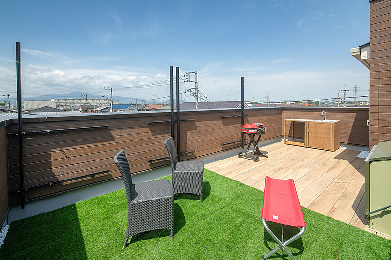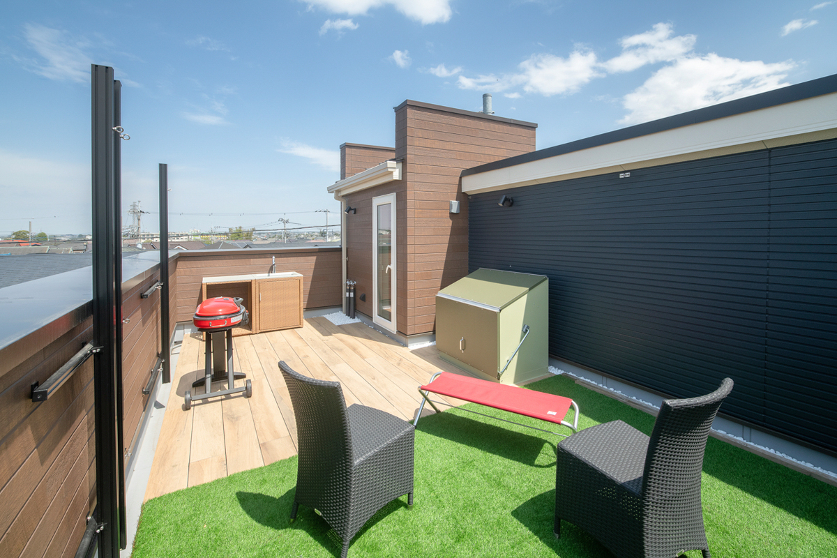 ■吹き抜けのある開放的なLDK■エアフローシステム(空気循環システム)搭載!家庭用ルームエアコンで1年中快適な室内環境を実現!■屋上庭園付きで、自宅の屋上がリビング空間に!