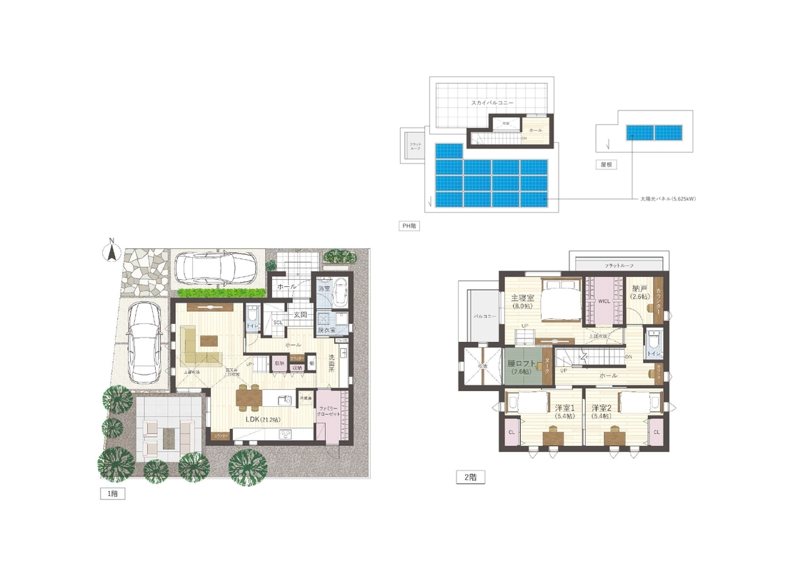 - ※完成予想図やCG合成画像は、門塀・植栽・庭・外観等、実際とは多少異なる場合があります。