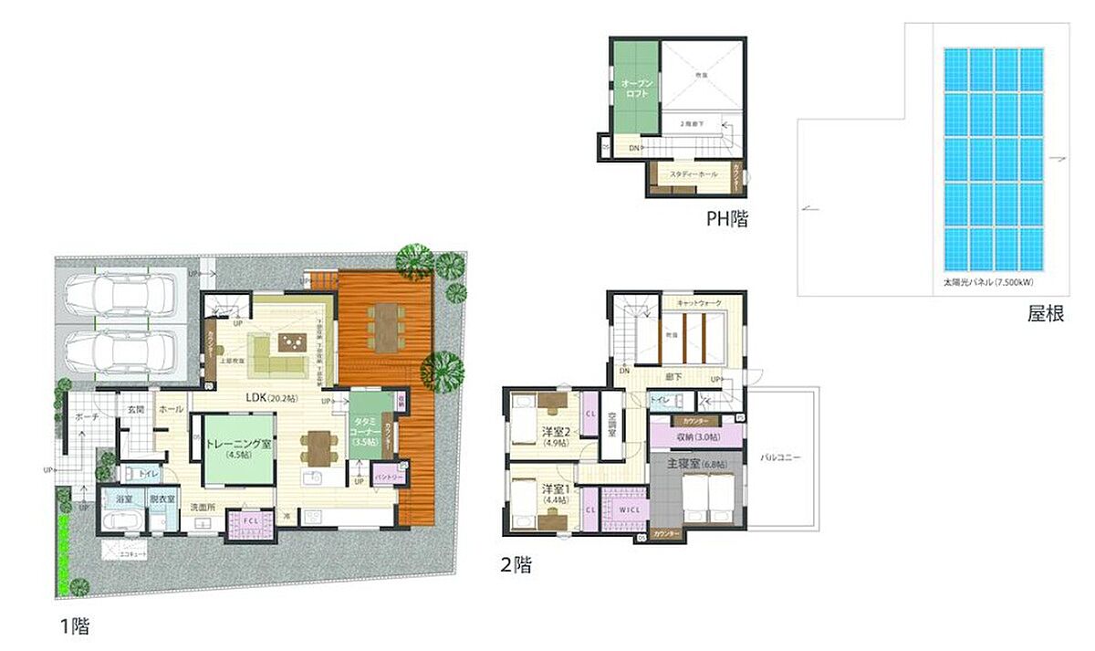 - ※完成予想図やCG合成画像は、門塀・植栽・庭・外観等、実際とは多少異なる場合があります。