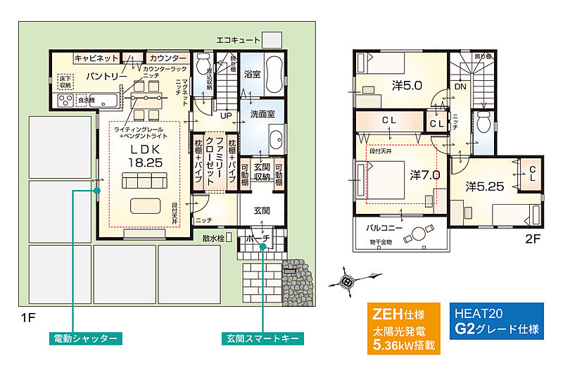 ■太陽光発電搭載の【ZEH仕様】が全戸標準!さらに【HEAT20・G2グレード仕様】付!先進仕様充実の、快適で高性能な住まいを実現します。