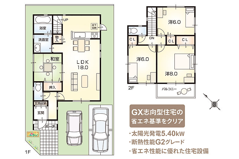 ■太陽光発電5.40kW搭載の【ZEH仕様】が標準仕様!さらに【HEAT20・G2グレード仕様】付!先進仕様充実の、快適で高性能な住まいを実現します。