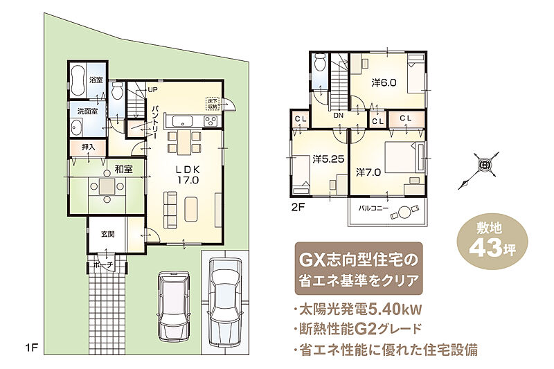 ■太陽光発電5.40kW搭載の【ZEH仕様】が全戸標準!さらに【HEAT20・G2グレード仕様】付!先進仕様充実の、快適で高性能な住まいを実現します。
