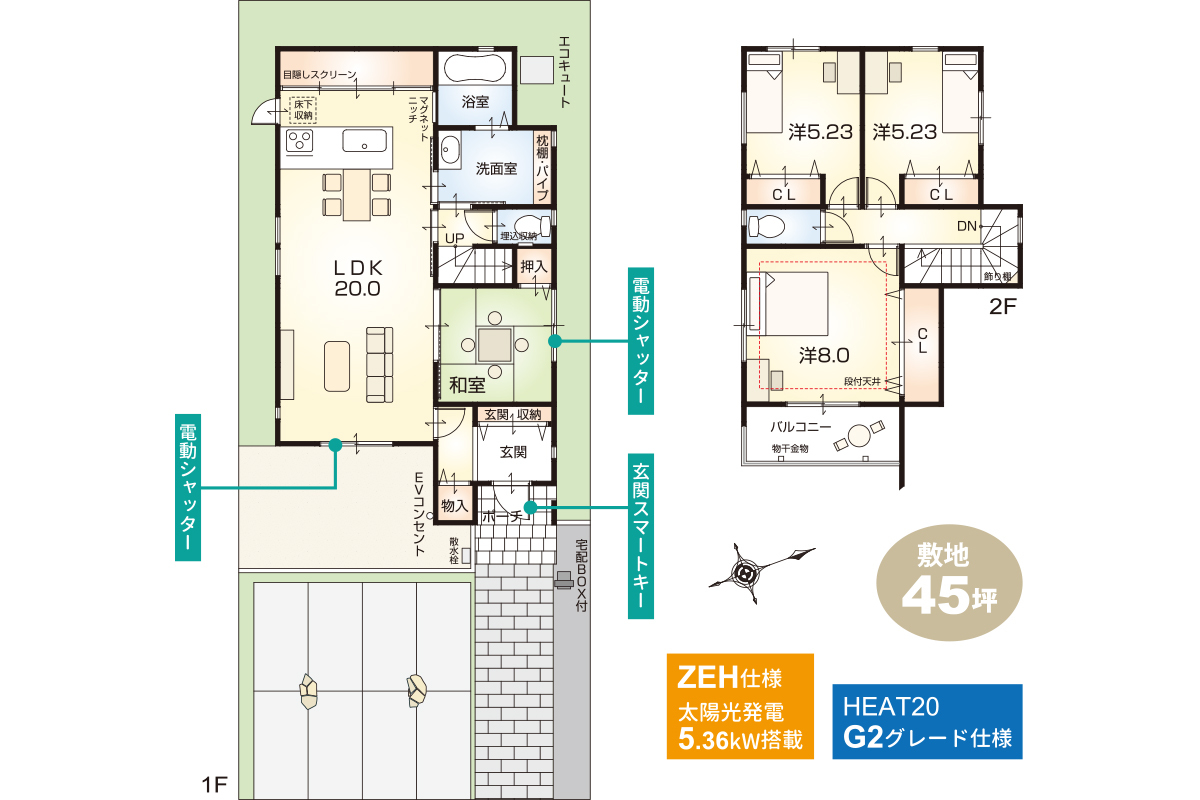 ■太陽光発電搭載の【ZEH仕様】が全戸標準!さらに【HEAT20・G2グレード仕様】付!先進仕様充実の、快適で高性能な住まいを実現します。