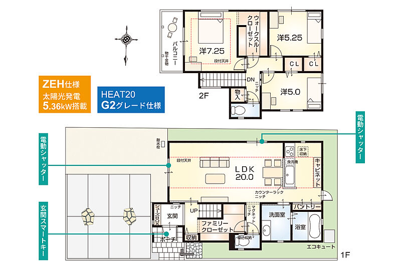■太陽光発電搭載の【ZEH仕様】が全戸標準!さらに【HEAT20・G2グレード仕様】付!先進仕様充実の、快適で高性能な住まいを実現します。