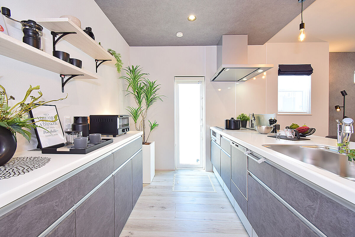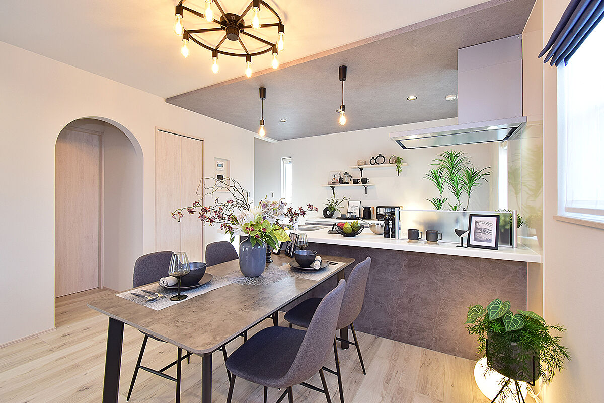 ■【6号地先進モデルハウス完成!】開放感のある17.5帖LDKのモダンな住まいです。専任設計士とつくる自由設計(注文家創り)の区画もあります。