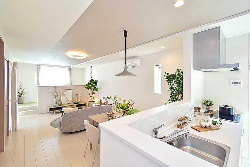■【先進モデルハウス6号地完成!】畳コーナーのある20.75帖LDKの住まいです。キッチン横にランドリールームを設置!使い勝手のいい水回りもポイント!専任設計士とつくる、自由設計の区画もあります。