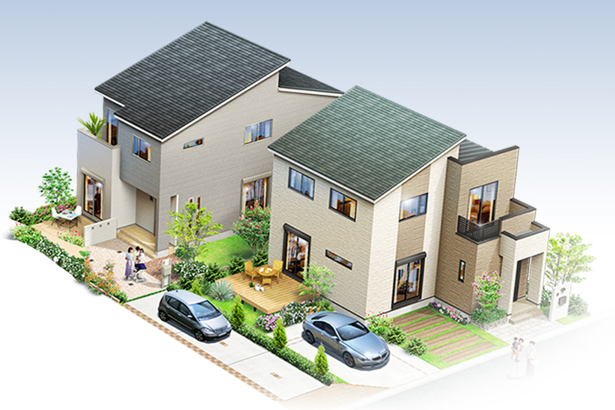- ※完成予想図やCG合成画像は、門塀・植栽・庭・外観等、実際とは多少異なる場合があります。