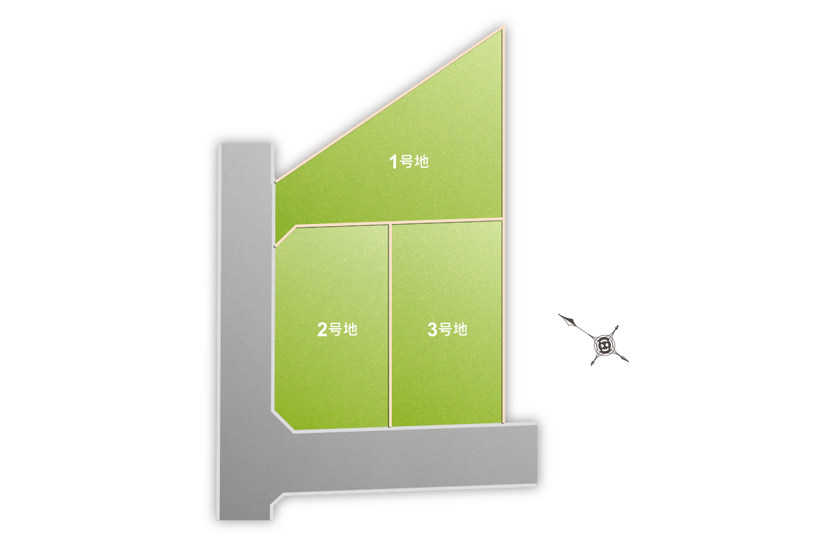 | 完成予定日 | 1号地R8年2月完成予定、3号地契約後6か月後 | 引き渡し可能年月 | 1号地完成後即引き渡し可、3号地契約後6か月後 |