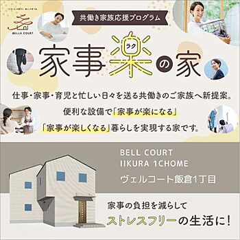 仕事・家事・育児と忙しい日々を送る共働きのご家族へ―― 便利な設備で「家事が楽になる」「家事が楽しくなる」暮らしを叶える家です。