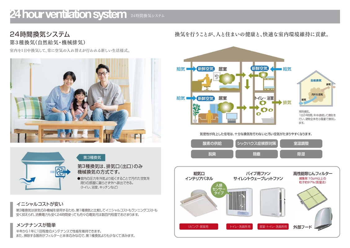 【 Low-E複層ガラス 】…… 薄い金属膜のコーティングにより太陽熱を効果的に遮断し、冬は暖かさを保ち、夏は室内を涼しく保ちます。断熱性能が高いため、冷暖房費の節約にも効果的です。 【 宅配ボックス 】…… 家族全員不在時はもちろん、お子様の留守番や在宅中の家事育児で手が離せない時、防犯のため対面を避けたい時など、さまざまな状況で安心・安全にご利用いただける設備です。 【 EVコンセント 】…… EVコンセントと屋外防水コンセントが設置されており、電気自動車の充電はもちろん、屋外での電気機器の使用にも便利。自宅で簡単に充電でき、生活の幅が広がります。