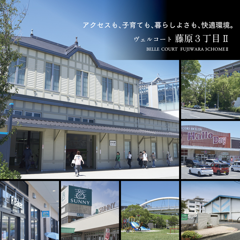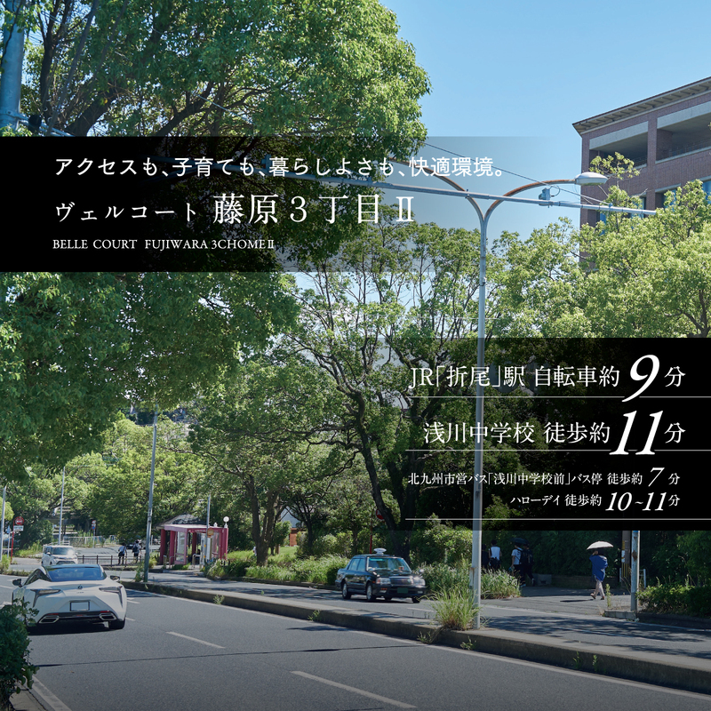 ヴェルコート藤原3丁目から 》》》【教育機関】・「光貞」小学校…徒歩15分・「浅川」中学校…徒歩11分・本城会 保育施設ピッコリーノ…徒歩8分 【交通機関】・北九州市営バス「浅川中学校前」停…徒歩7分・JR鹿児島本線「折尾」駅…自転車9分 【ショッピング】・サニー本城店…車で3分・サンリブ折尾…車で3分 【公園】・藤原台西公園…徒歩2~3分