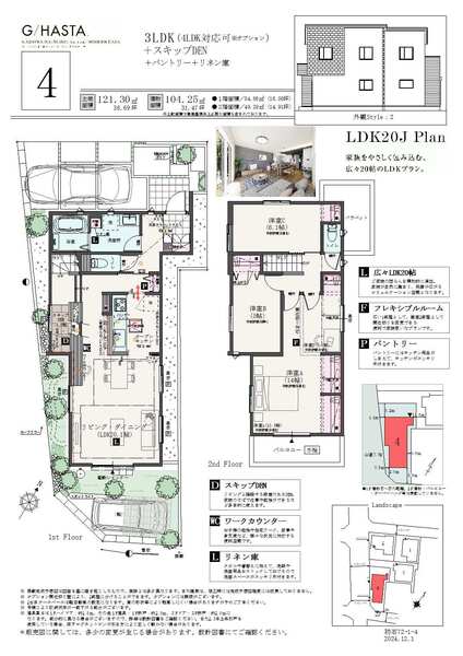| 建物面積 | 104.25m2 | 土地面積 | 121.3m2 / 私道負担なし |