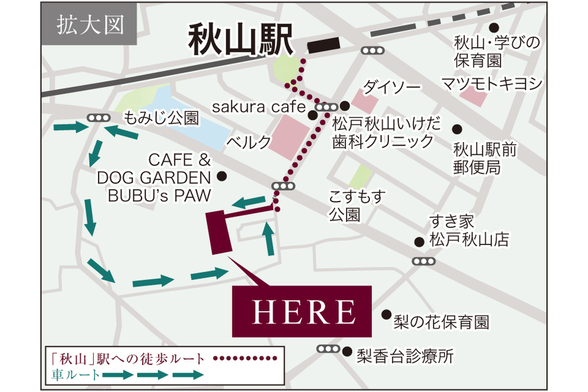 北総鉄道「秋山」駅 徒歩6分 JR武蔵野線「東松戸」駅 徒歩26分 |