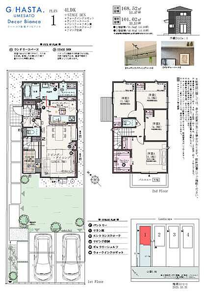 | 建物面積 | 97.5m2~101.02m2 | 土地面積 | 150.14m2~168.52m2 / 私道負担なし |