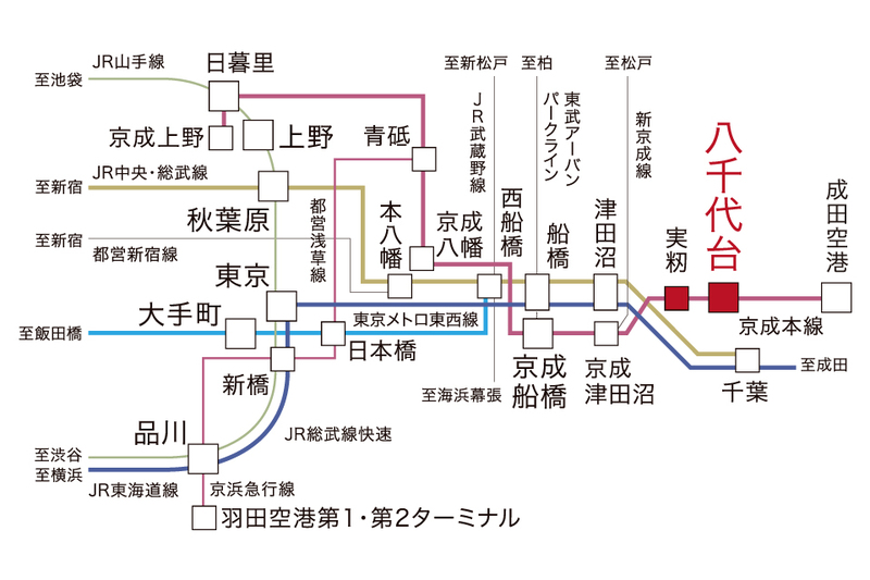 魅力1 ◆京成本線「八千代台」駅自転車6分(実測)×徒歩18分 ◆快速特急停車駅
